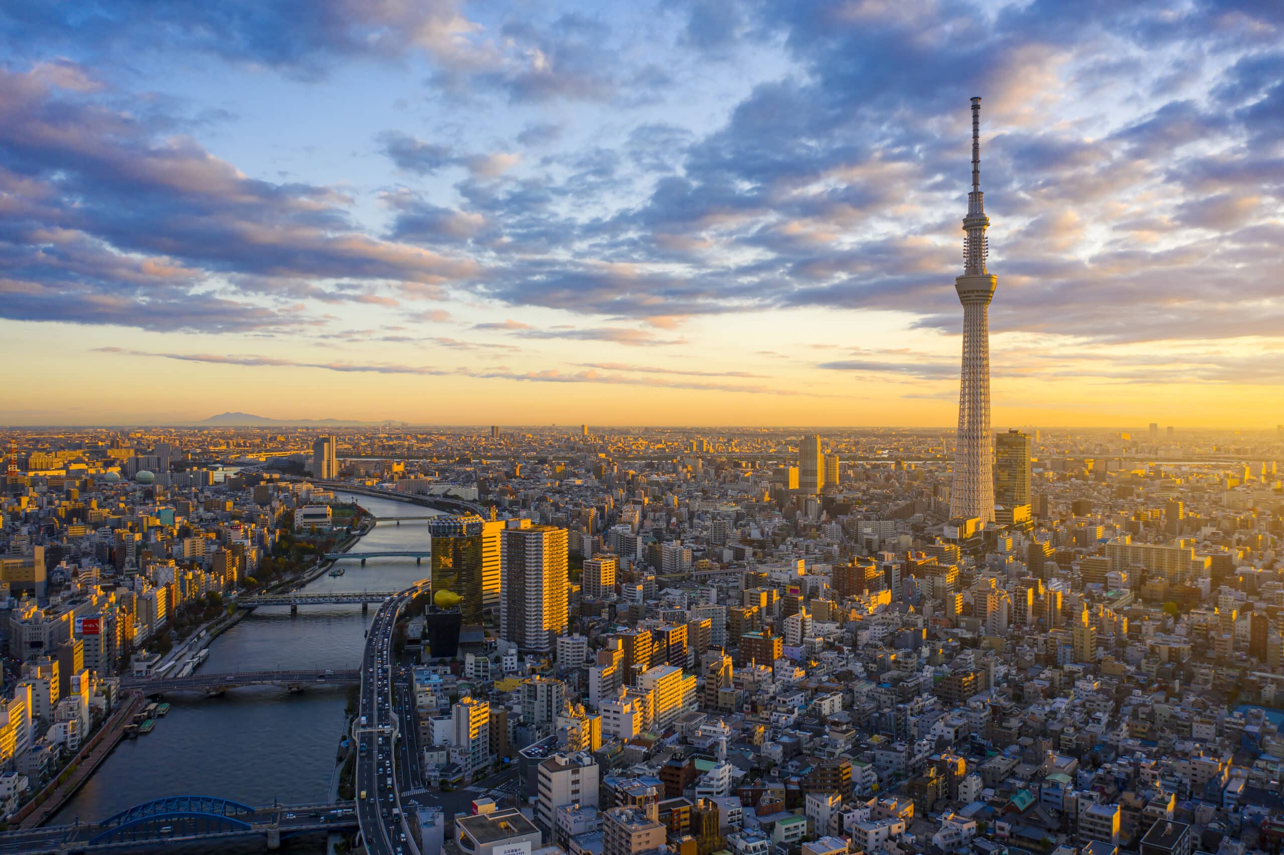 Tokyo cityscape with the Tokyo Sky Tree visible on the horizon
