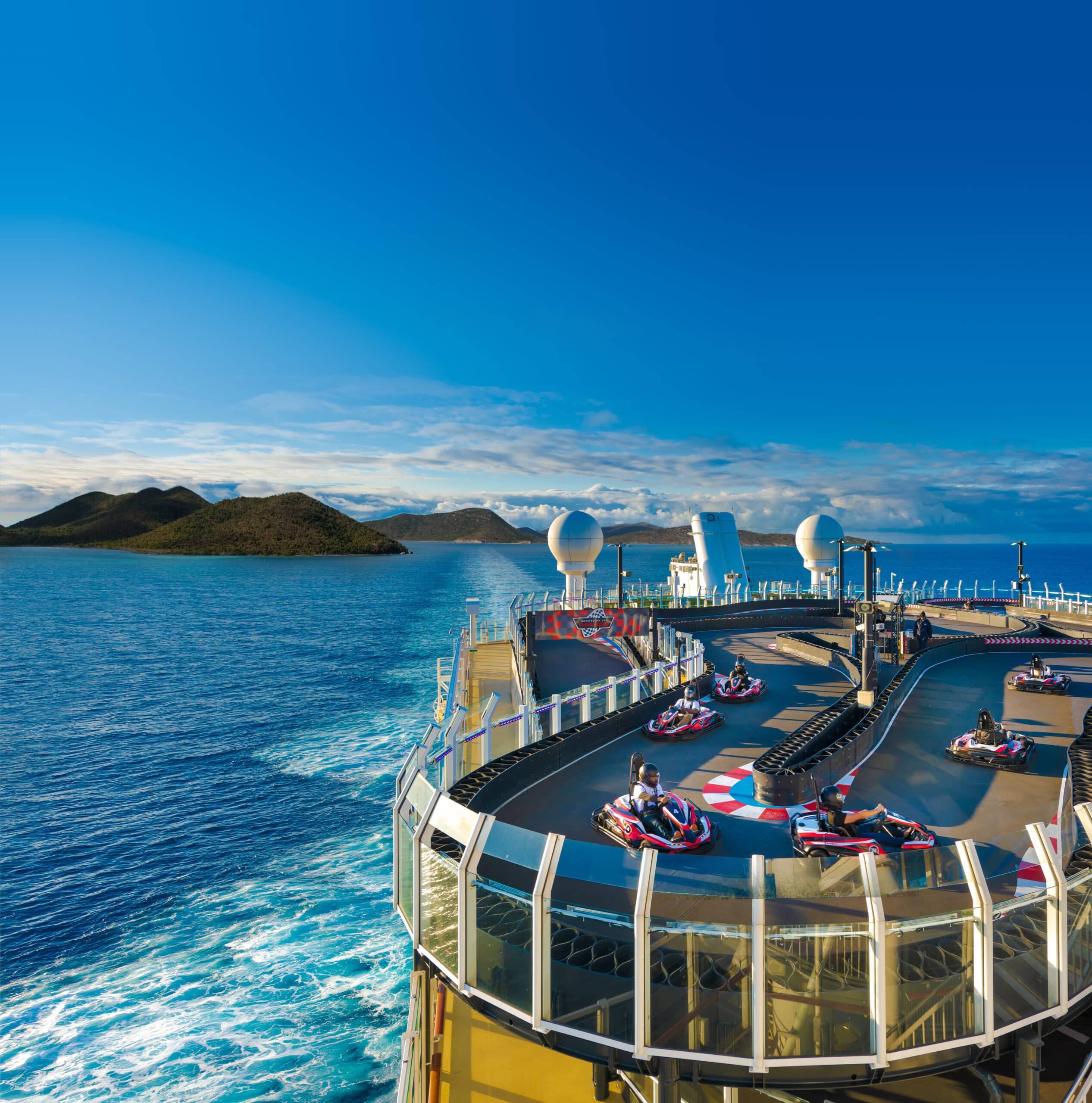 Norwegian Cruise Line ships often have so many onboard activities to try – including the water slides and go-kart tracks, that they can get super busy. Instead of wasting time waiting in a queue to try them for yourself, try get to them in “off-peak” times. This might be early evening when most families will be having dinner with their kids. Or maybe during the mornings or afternoons on port days when the majority of the guests are onshore.