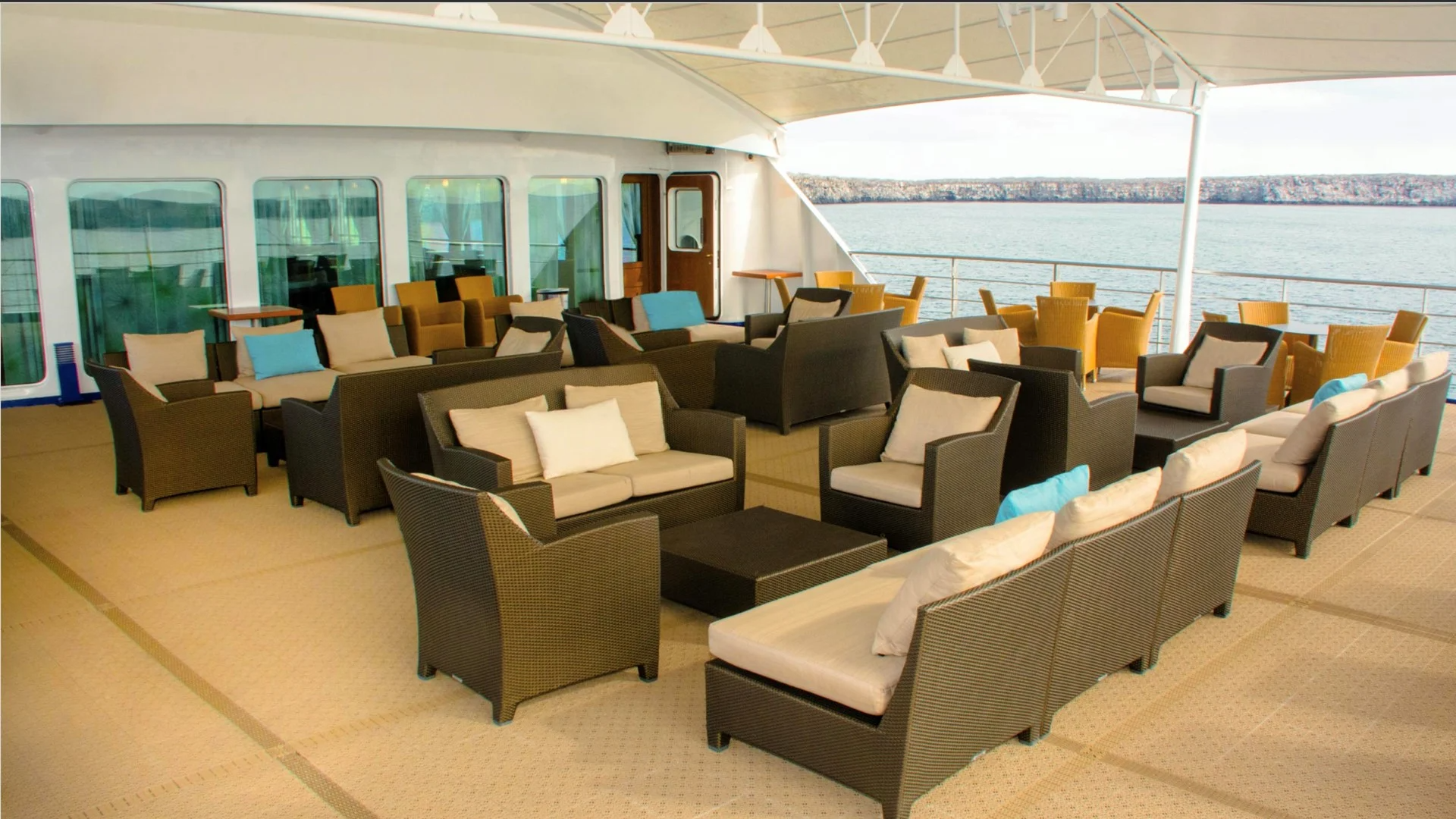 This sleek, spacious ship has a layout that allows you to enjoy your cruise from start to finish. Enjoy delicious food in the elegant restaurant, increase your knowledge of the Galápagos Islands with your fellow travellers in the Science Center or maybe mingle out on the multiple decks.