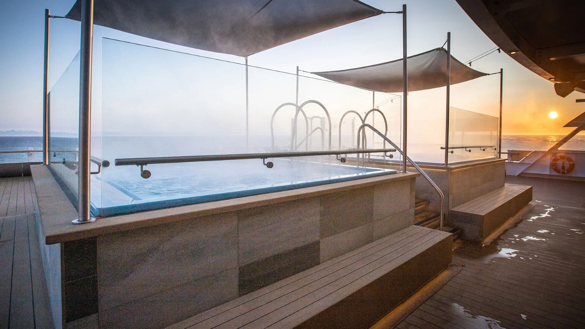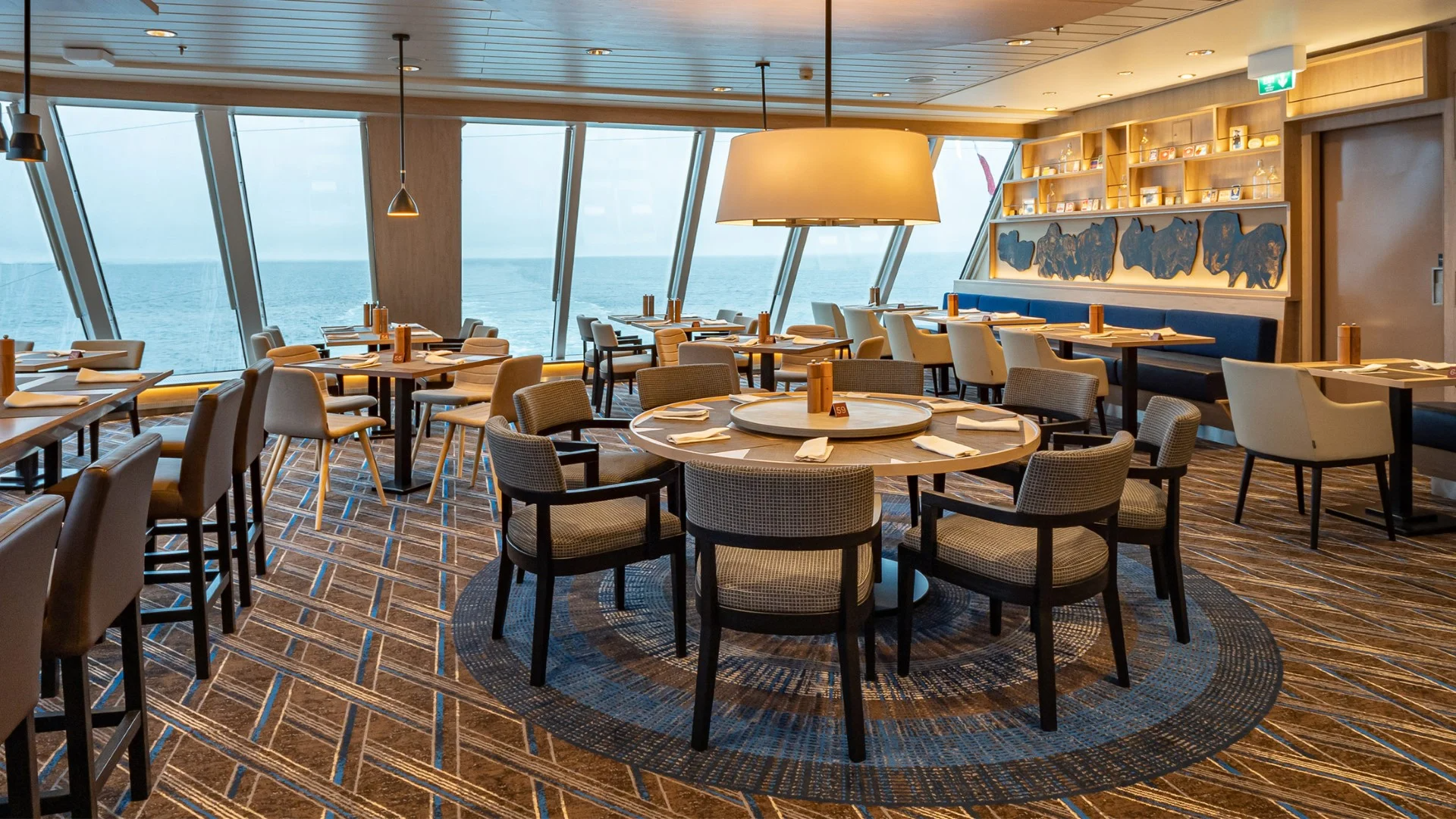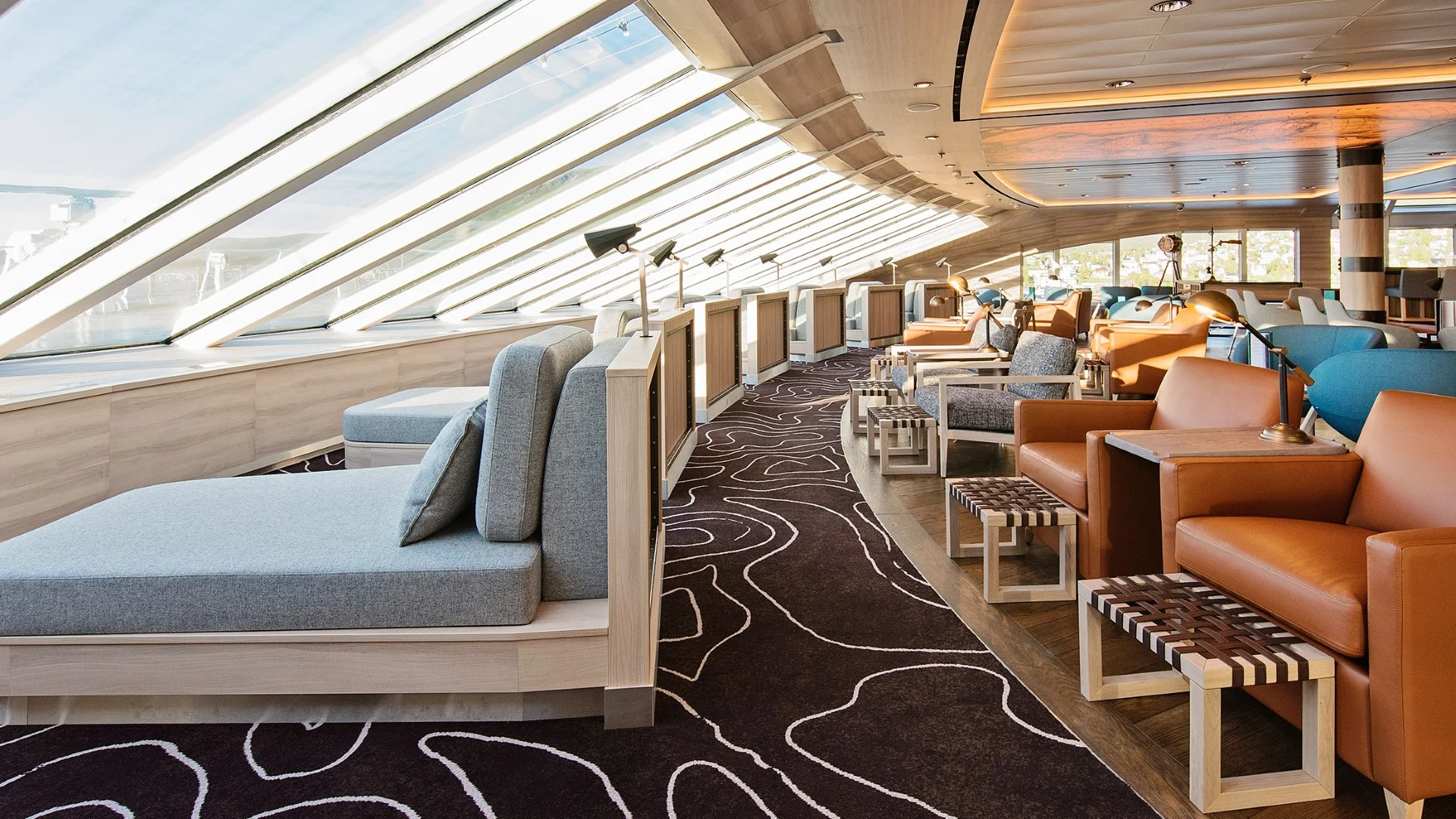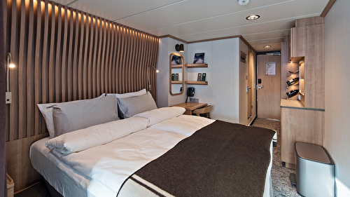 The stunning scenery is reflected in a rich and comfortable interior design. Scandinavian materials from nature, such as granite, oak, birch and wool are used to create relaxed and stylish cabins and public areas. All cabins are outside cabins, of which 50% have private balconies, and aft suites feature private outdoor hot tubs with spectacular views.