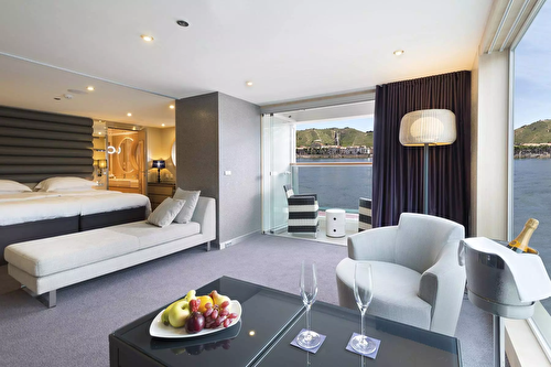 On board you’ll have full access to a fitness center and wellness area, special on board entertainment, Wi-Fi internet, e-bikes and of course luxuriously appointed suites to retire to at the end of the day. Your Cruise Director, as well as every member of our hospitable on board team, are on hand to make sure you make the most of every minute of your time on board your Space-Ship.