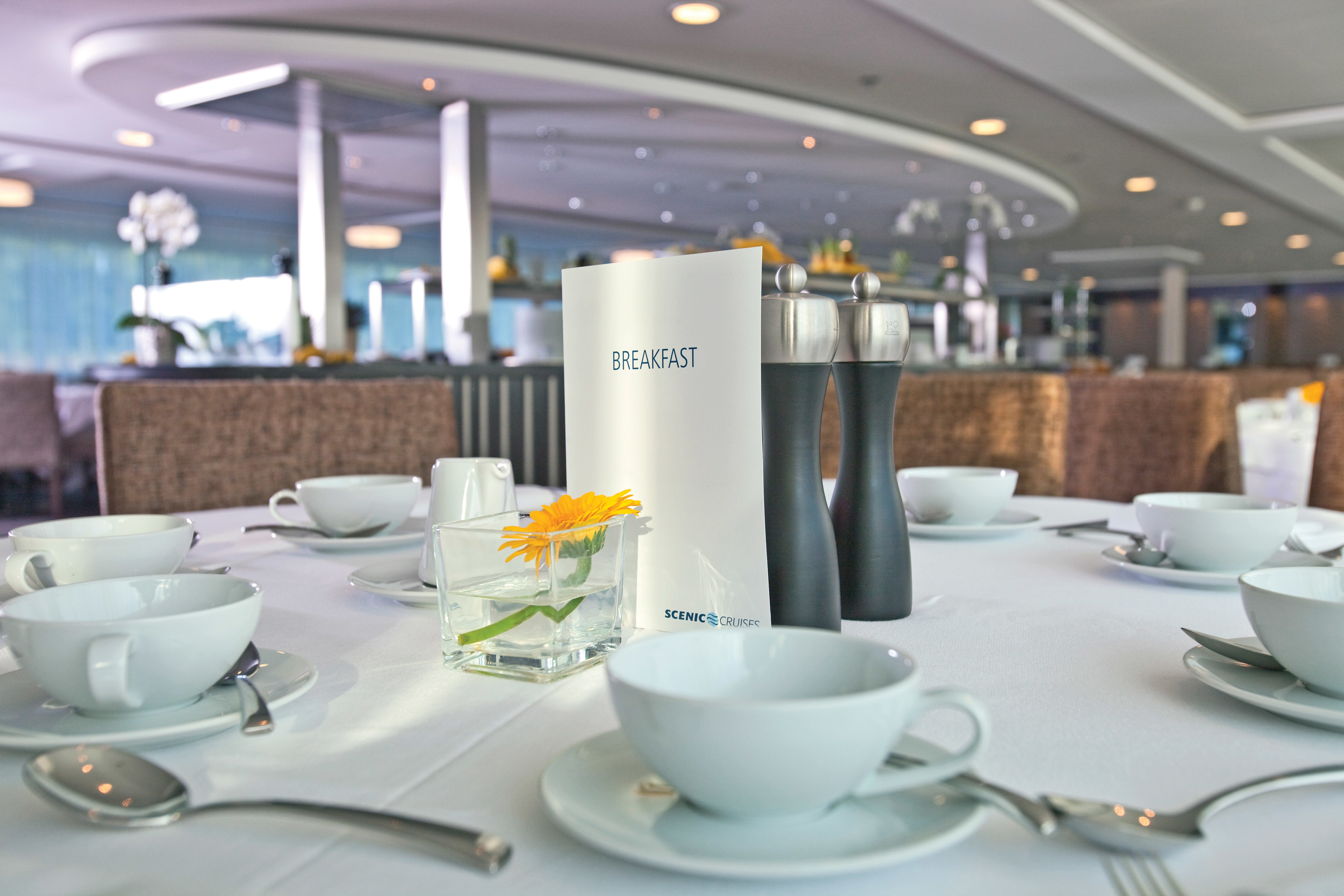 Like every ship in the Scenic fleet, these vessels feature spacious luxury suites that are class-leading in terms of size and refinement. Suites and cabins are complete with lavish extras like large private balconies fitted with the pioneering Scenic Sun Lounge screen, as well as a 32-inch Samsung HD TV linked to a Mac computer and complimentary access to a high speed WiFi system. Other in-cabin features include a minibar, luxurious double (or twin) bed complete with pillow menu, and perfectly appointed bathrooms featuring the very latest shower and wet-room technology.