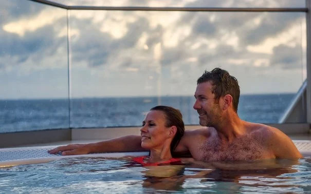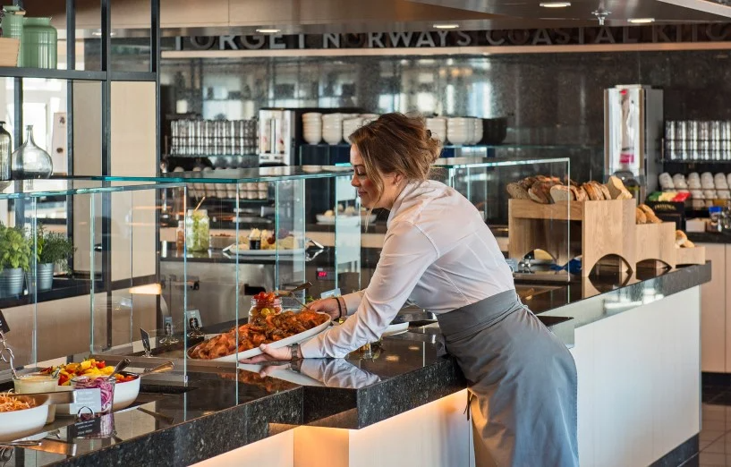 MS Polarlys was refurbished in 2016 and now features a modern, Arctic-inspired interior. On board are three different restaurants, the Multe bakery and ice cream bar, a sauna and fitness room. Out on deck you can enjoy the view from one of our two hot tubs. We have a comfortable bar at the front of the ship where you can enjoy a nice traditional drink. The vessel also has a large compass area where you find the reception, the expedition team, conference room and shop.