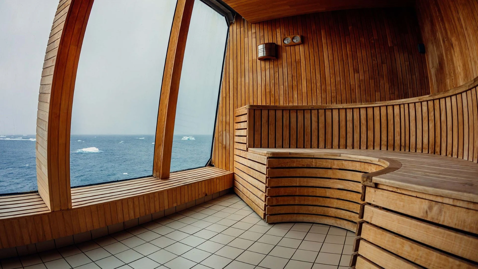 Panoramic sauna and fitness room