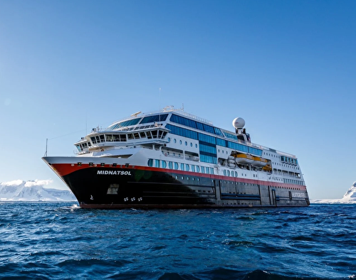 One of our best-known ships, MS Midnatsol (previously MS Maud) is named after the Midnight Sun, the phenomenon that occurs in northern Norway every summer when the sun doesn’t set for 24 hours. The décor on board is inspired by Norway’s stunning nature, reflected in many of the pieces of Norwegian modern art on board. Her bright interiors are appointed in a classic Art Deco style. Colours are inspired by the Midnight Sun, allowing you to relax in warm vibes every day of the year.