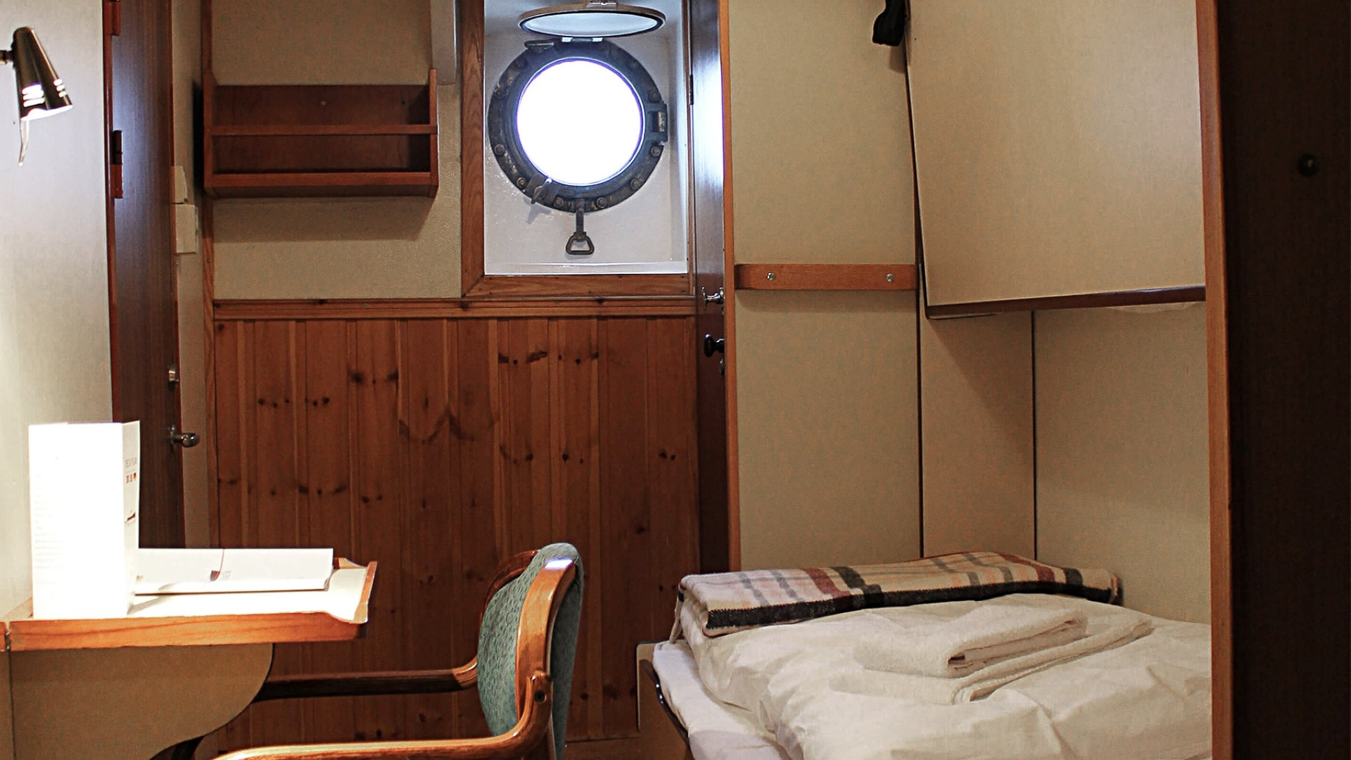 MS Nordstjernen is equipped with a dining room and bar, a café, a panorama lounge and a library. Inside, you’ll find cozy interior and exterior cabins, the majority of which have upper and lower berths. All rooms and deck surfaces exhibit that old, beautiful wood.