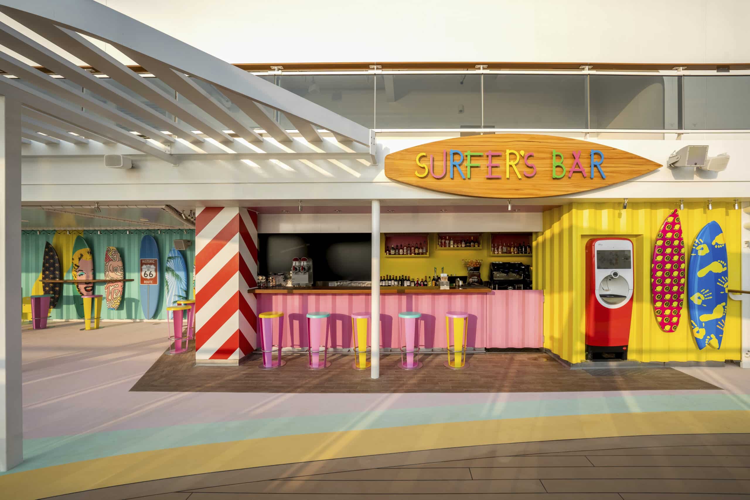Gin lovers will find it hard to tear themselves away from The Gin Project, a new 87-seat G&T bar themed after a real distillery. Devotees of high-quality cigars and cognacs will love the exclusive Malt Lounge with its opulent leather chairs that just exude elegance and comfort. Coffee connoisseurs can rejoice with not one, but two remarkable coffee bars, The Coffee Emporium and Jean-Philippe Chocolat and Café. When you descend the spiral staircase into the famous Masters of the Sea pub, you’ll find a host of onboard-created brews to try. And for a touch of adventure and relaxation, experience the exciting surf-themed outdoor bar.